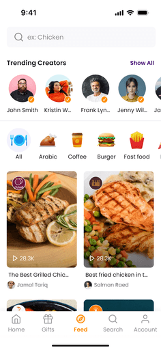 A visual walkthrough of Koinz Social, showcasing how I designed an experience where users order directly from reels and the social feed, while creators upload engaging food content.