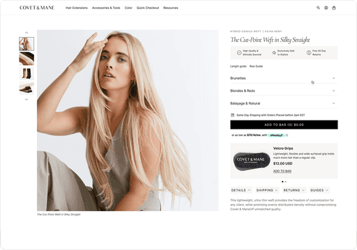 Redesigned Covet & Mane’s website to improve user experience, streamline navigation, and create a visually engaging interface that highlights products and enhances the shopping journey.